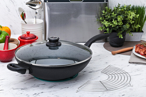 Вок с алмазным покрытием, с крышкой, 32 см, сплав алюминия, стекло, черный XD 61132c XD Classic+