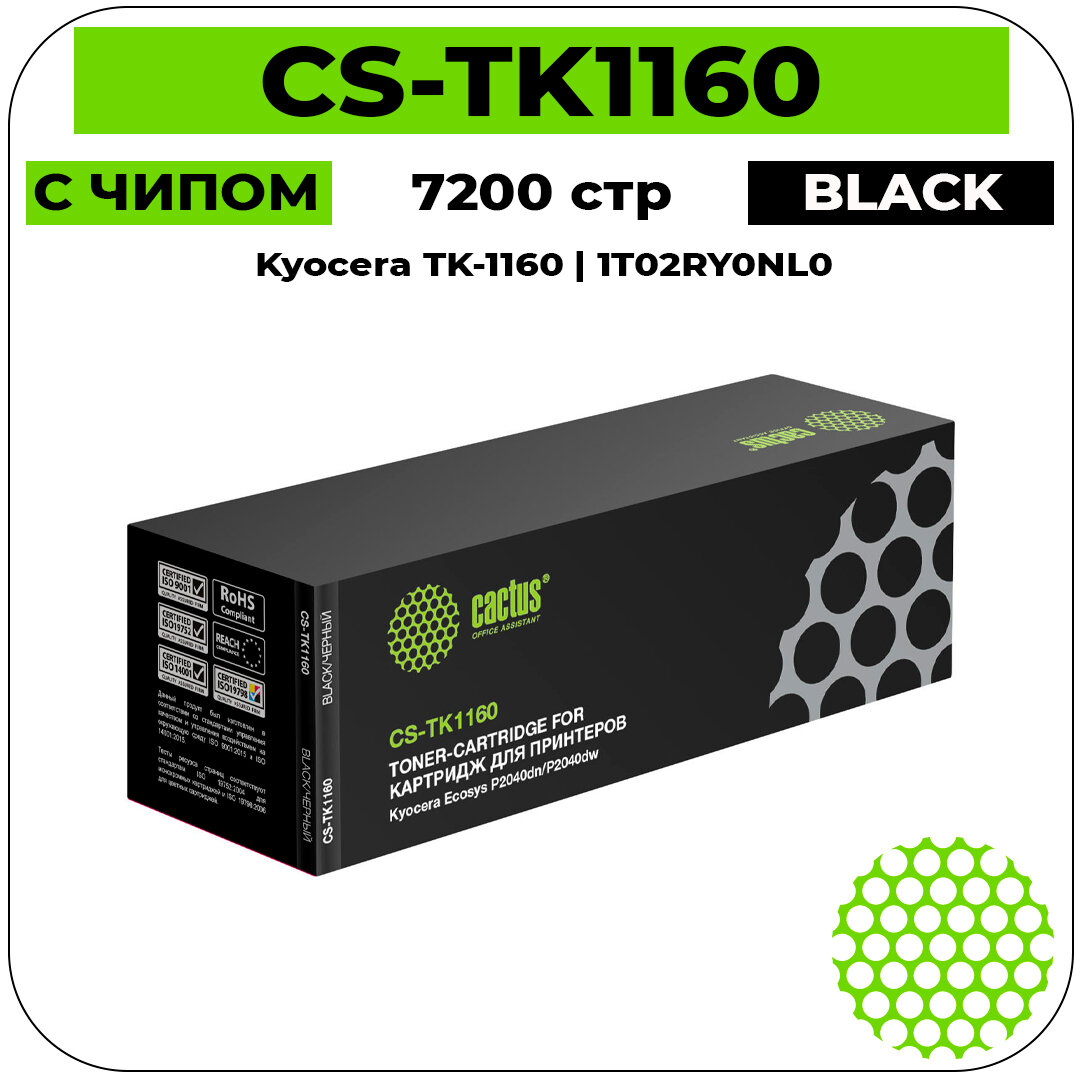Тонер-картридж CACTUS (CS-TK1160) для KYOCERA Ecosys P2040dn/P2040dw, ресурс 7200 стр