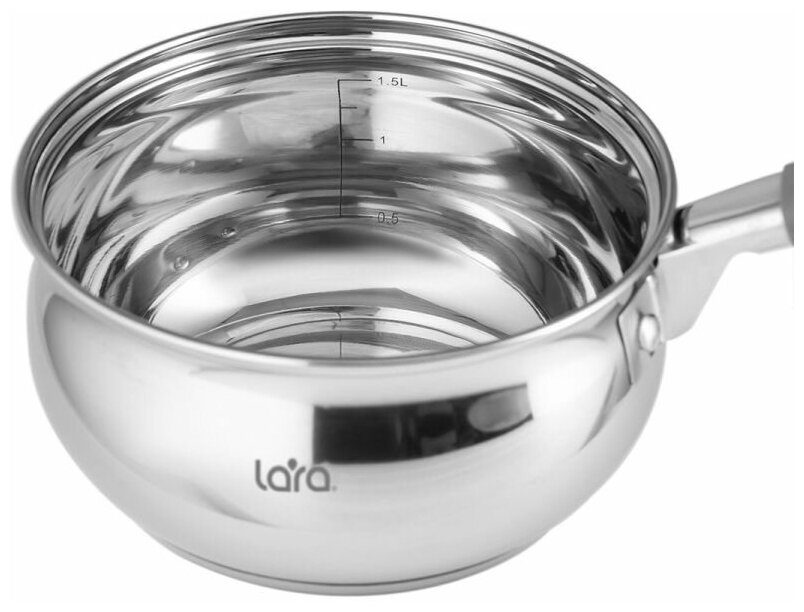 Сотейник LARA LR03-14 серия BELL /нерж., 16х8,5см, 1,8л, капсулир,индукц. дно, крышка