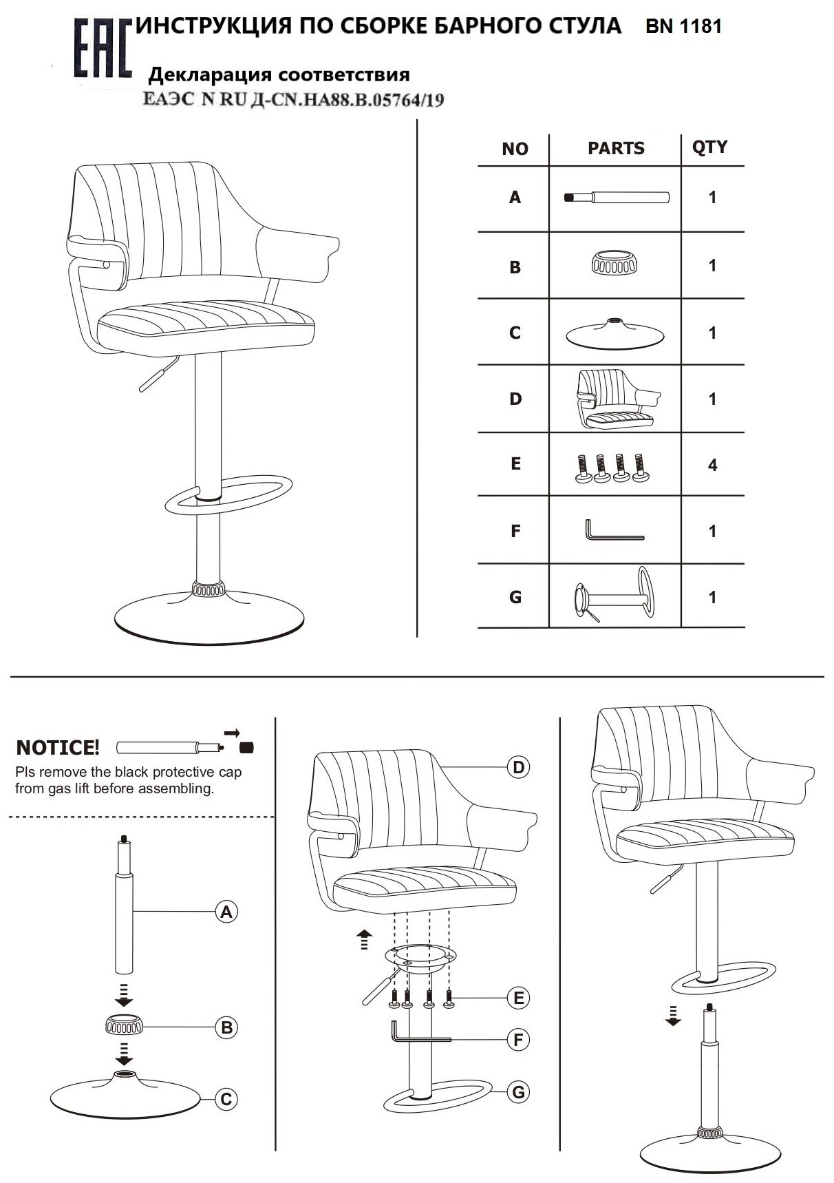 | Комплектация | Газ лифт, сиденье, комплект фурнитуры, диск-основание |