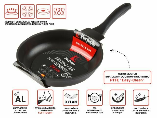 Сковорода литая ф 24х5.5 см, алюм., антиприг. покр., серия Black Induction, PERFECTO LINEA (подходит для всех типов плит, включая индукцию) (55-241013 (55-241013)