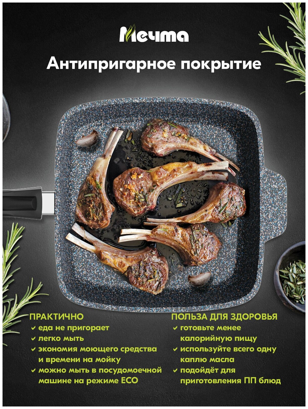 СохранитьСковорода квадратная Мечта Посуда Мечта "Гранит star" съемная ручка 26см (С027803) интересное: