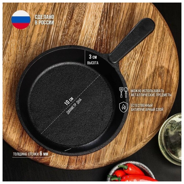Сковорода порционная литая чугунная Magma, d=14,5 см, h=3 см, чугунная ручка интересное: