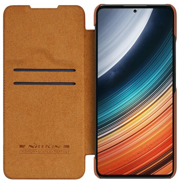 Кожаный чехол-книжка Nillkin Leather Qin Pro c защитой камеры для Xiaomi Poco F4 коричневый интересное: