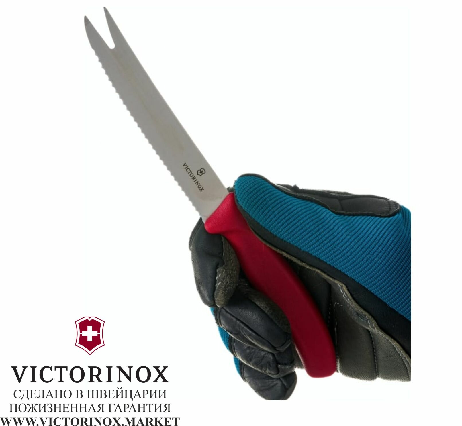 Купить Нож Victorinox для сыра и колбасок, лезвие 11 см волнистое, красный