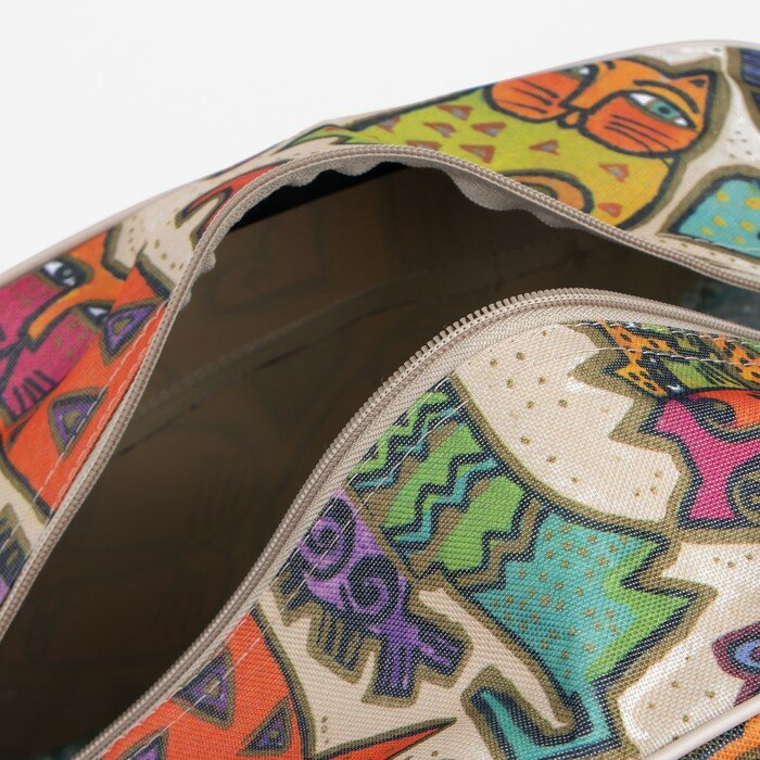 Сумка дорожная на молнии, 2 наружных кармана, длинный ремень, цвет бежевый/оранжевый