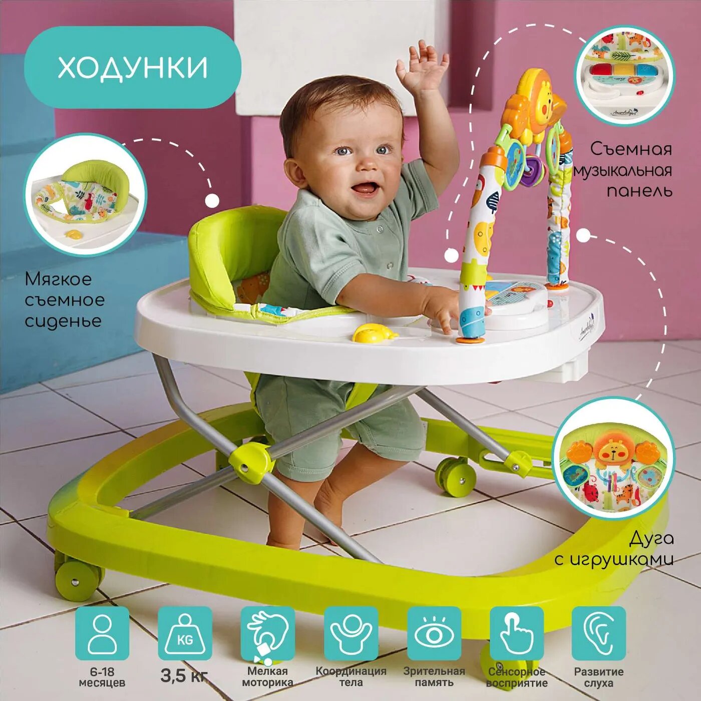 Ходунки детские с электронной игровой панелью AMAROBABY Walking Baby GREEN (зеленый) интересное: