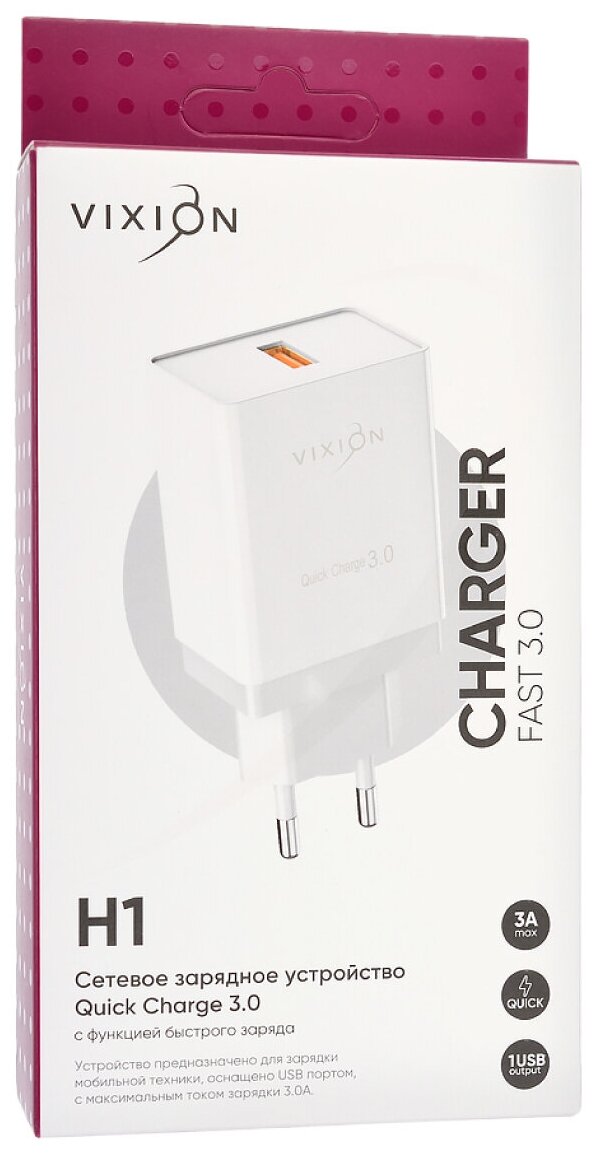 Сетевое зарядное устройство VIXION H1 (1-USB) Quick Charger 3.0 (белый) интересное: