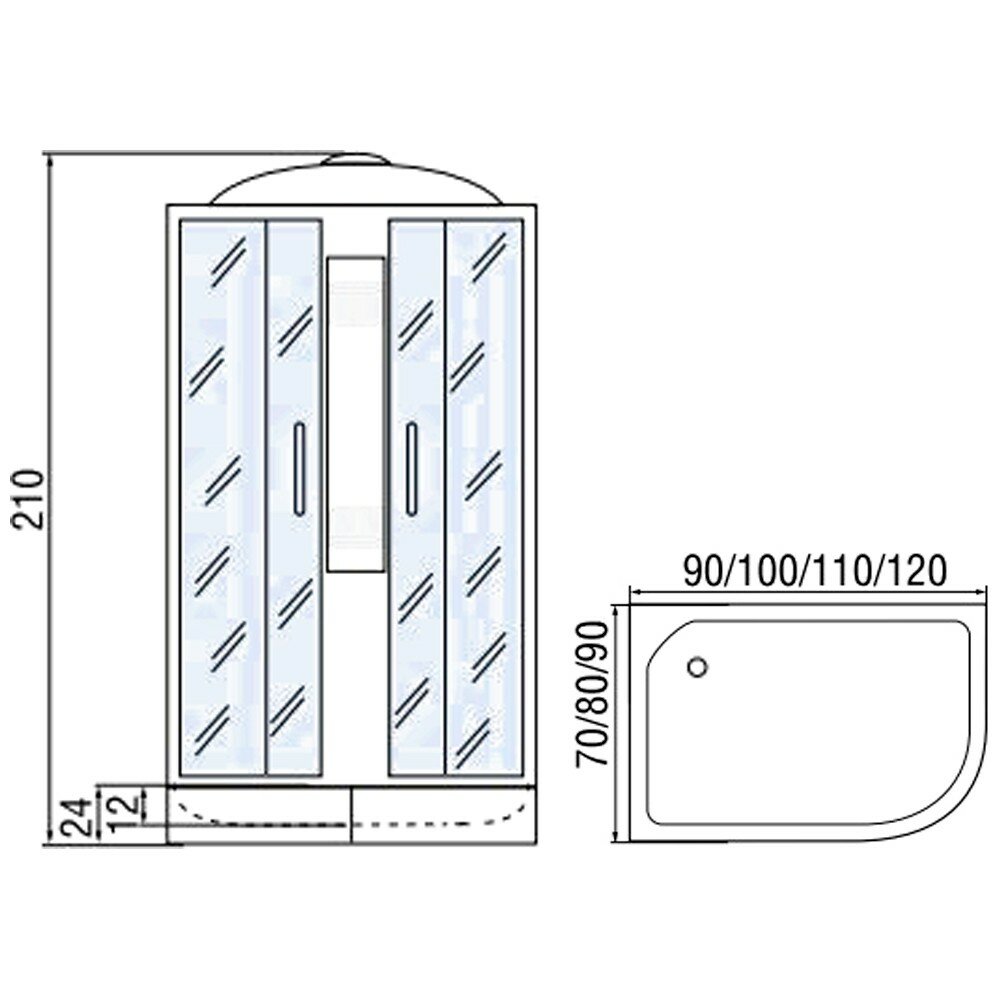 Душевая кабина Мономах 90/70/24 МЗ L, 900х700х2100, асимметричная
