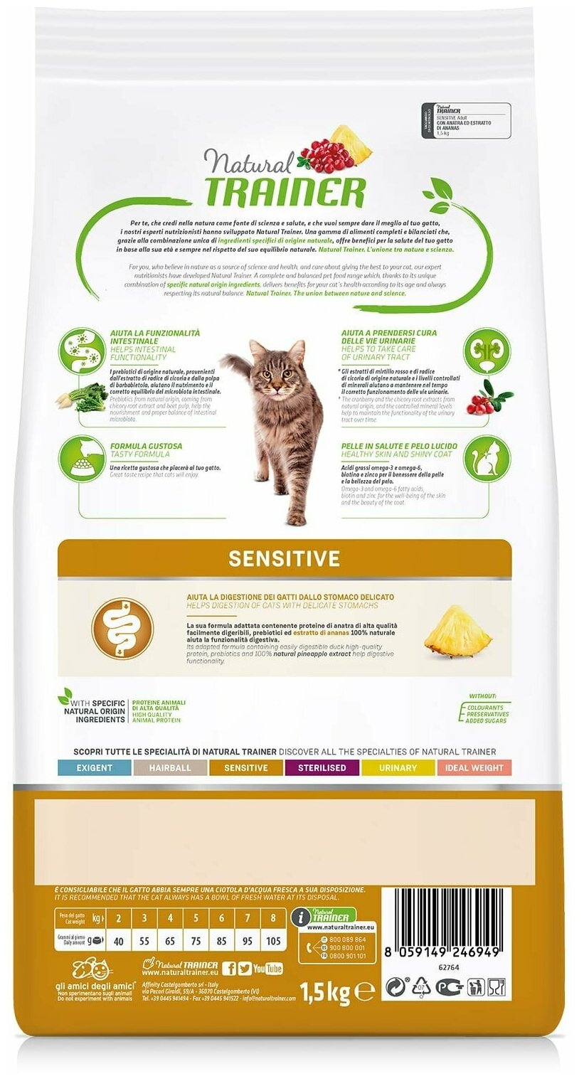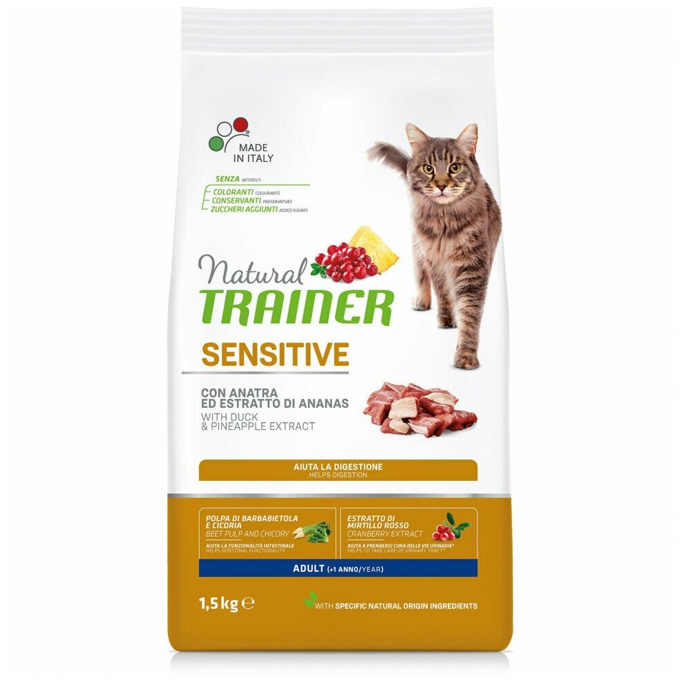 Сухой корм TRAINER NATURAL ADULT CAT SENSITIVE WITH DUCK монобелковый для взрослых кошек при аллергии с уткой (1,5 кг)