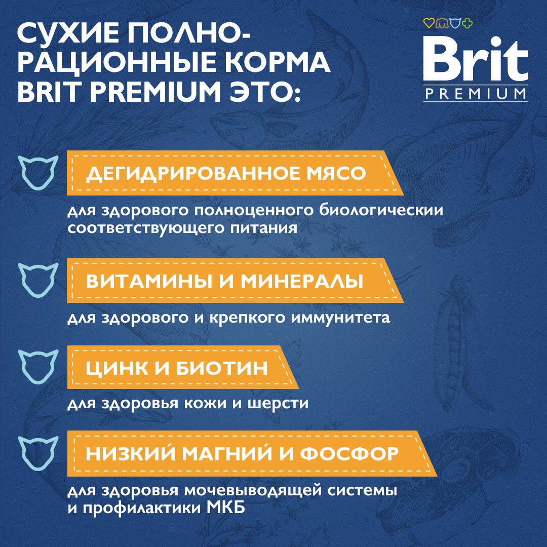 Корм сухой для взрослых кошек BRIT Premium Cat Sterilised Утка, курица, для кастрированных и стерилизованных, 800г