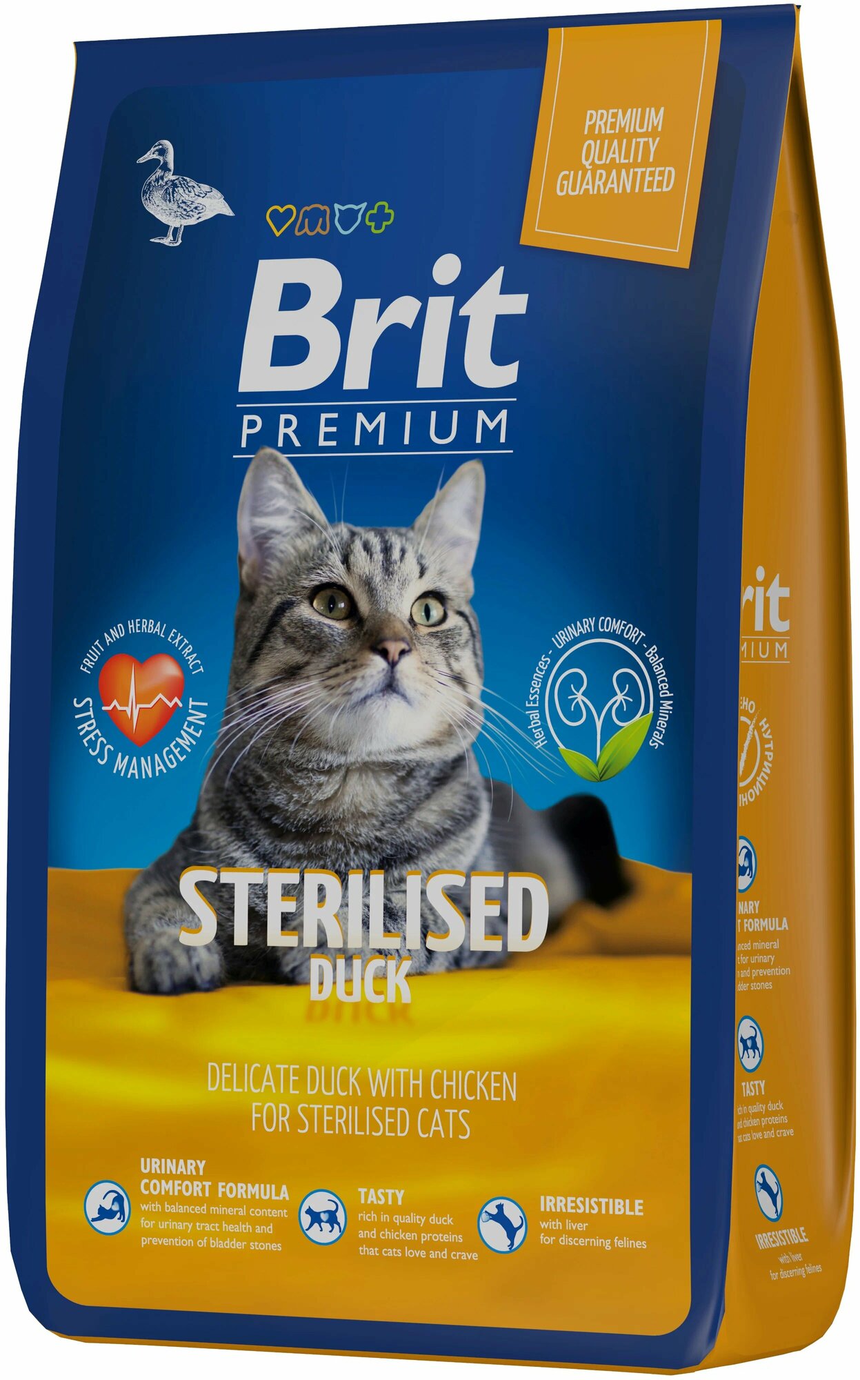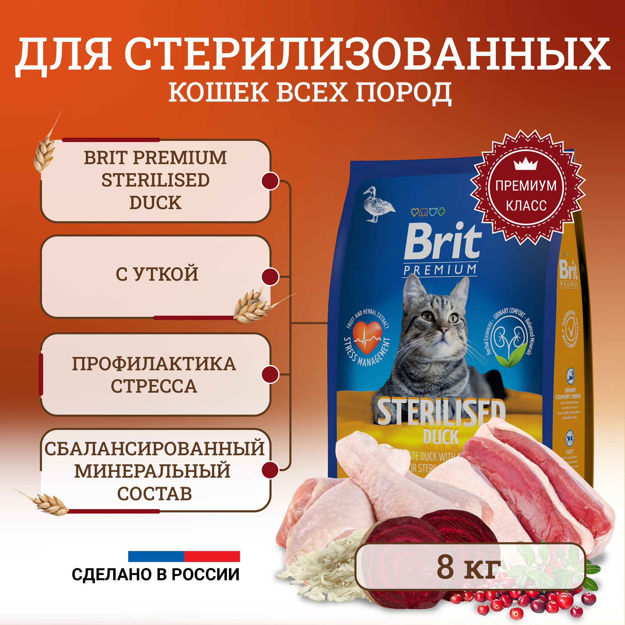 Brit Premium корм для взрослых стерилизованных кошек, с уткой и курицей 8 кг
