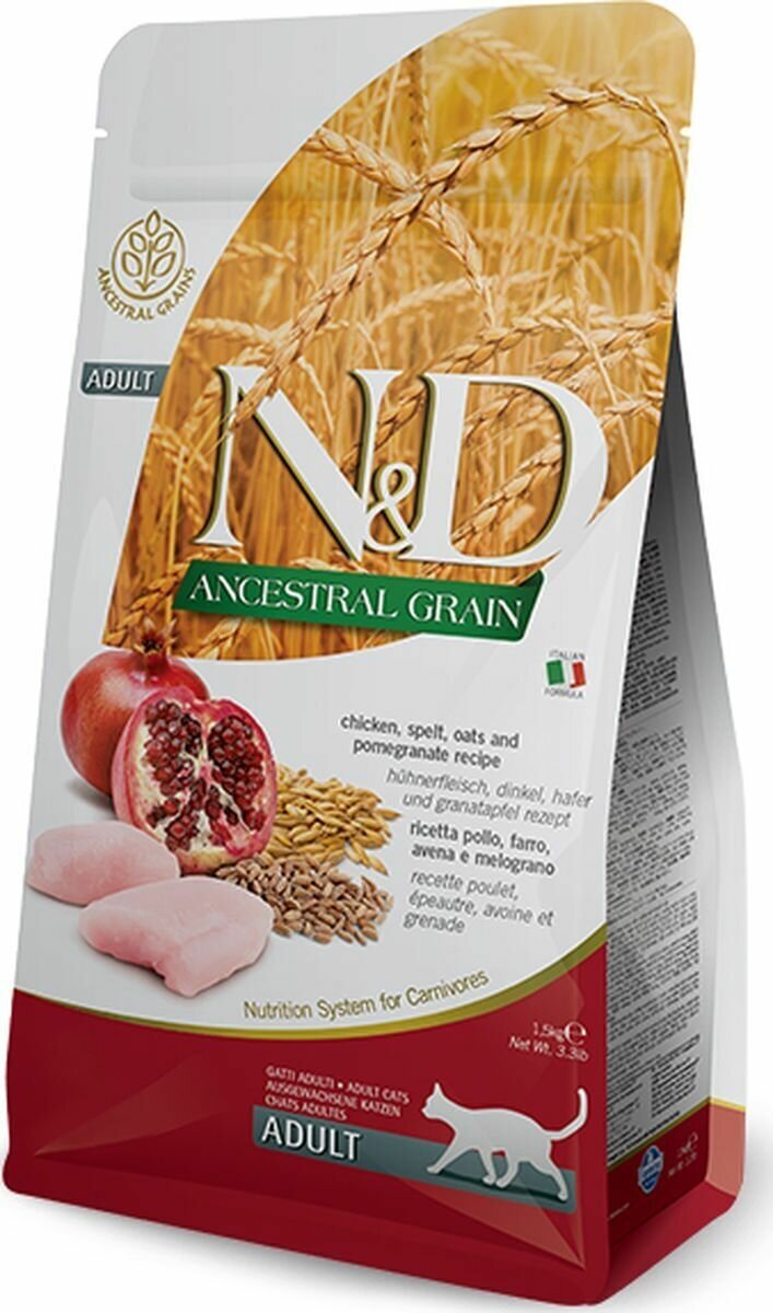 N&D ancestral grain cat курица, спельта, овес и гранат для взрослых котов и кошек 1.5 кг х 2 шт.