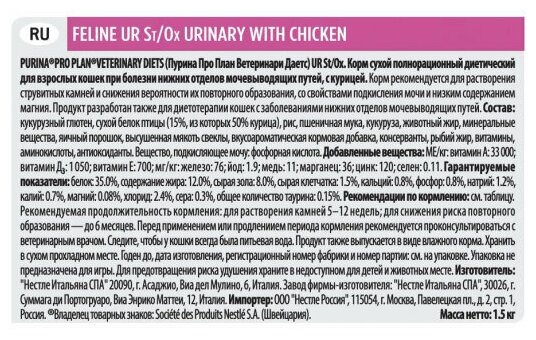 Pro Plan Veterinary Diets / Сухой корм Pro Plan Veterinary Diets (UR) Urinary для кошек с курицей профилактика МКБ 1.5 кг