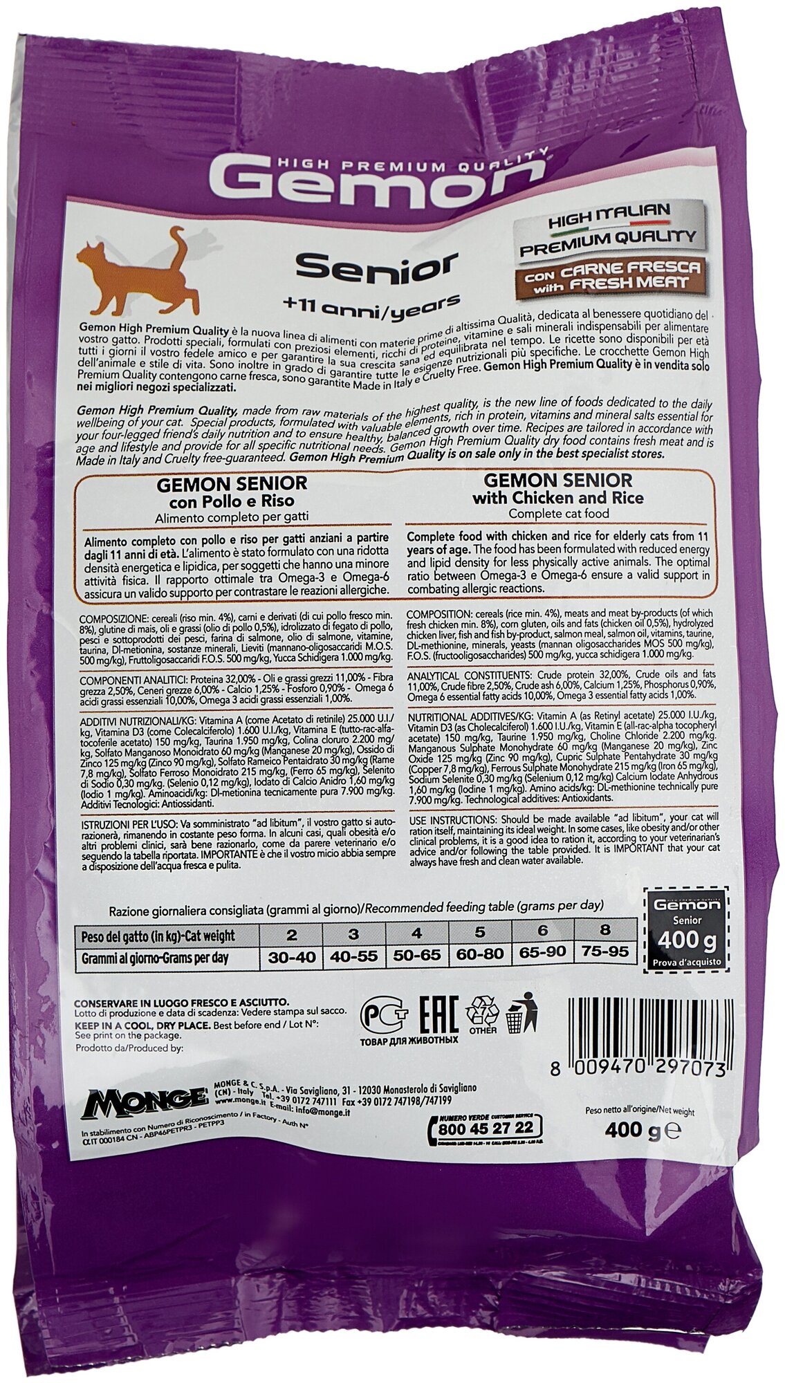 Купить Сухой корм для пожилых кошек Gemon с курицей, с рисом 2 шт. х 400 г