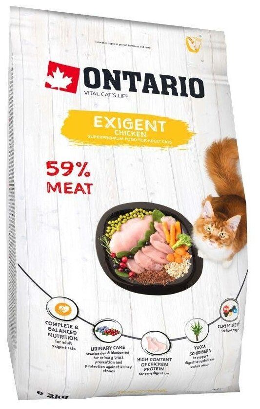 Корм сухой ONTARIO Cat Exigent для особо требовательных кошек с курицей 2 кг