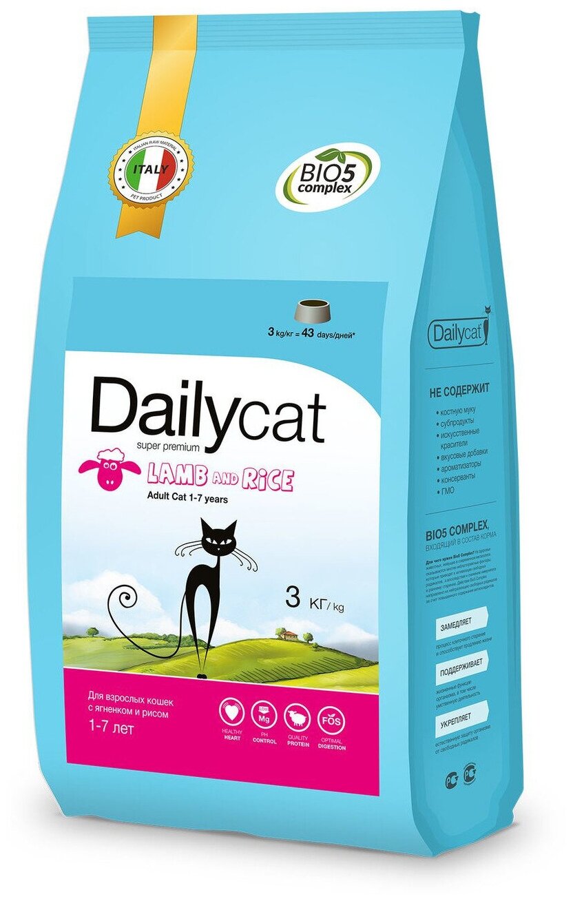 Сухой корм Dailycat ADULT Lamb and Rice для взрослых кошек с ягнёнком и рисом - 3кг интересное: