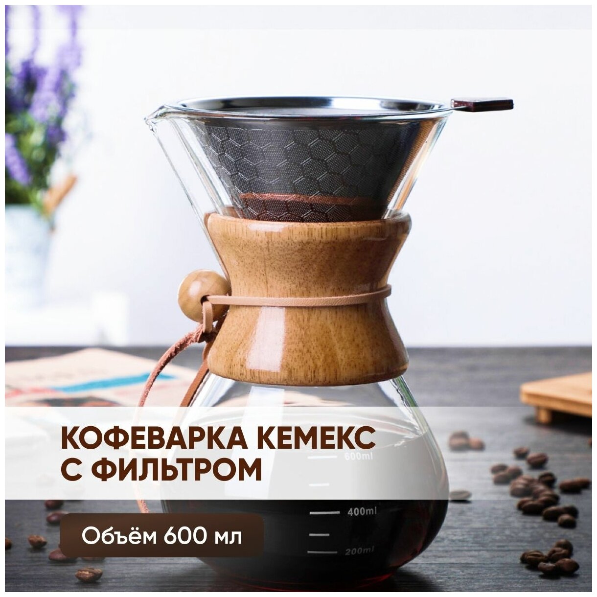 Кофеварка Кемекс (кемикс) для кофе 600 мл, многоразовый металлический фильтр, стеклянный кофейник (чайник) для харио, ЧайЧай интересное: