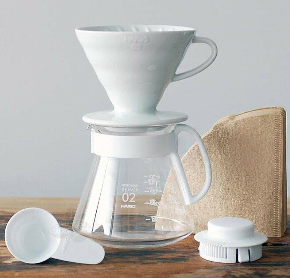 | Комплектация | белая керамическая воронка Hario V60 02, 40 фильтров, кофейник, мерная ложка |
