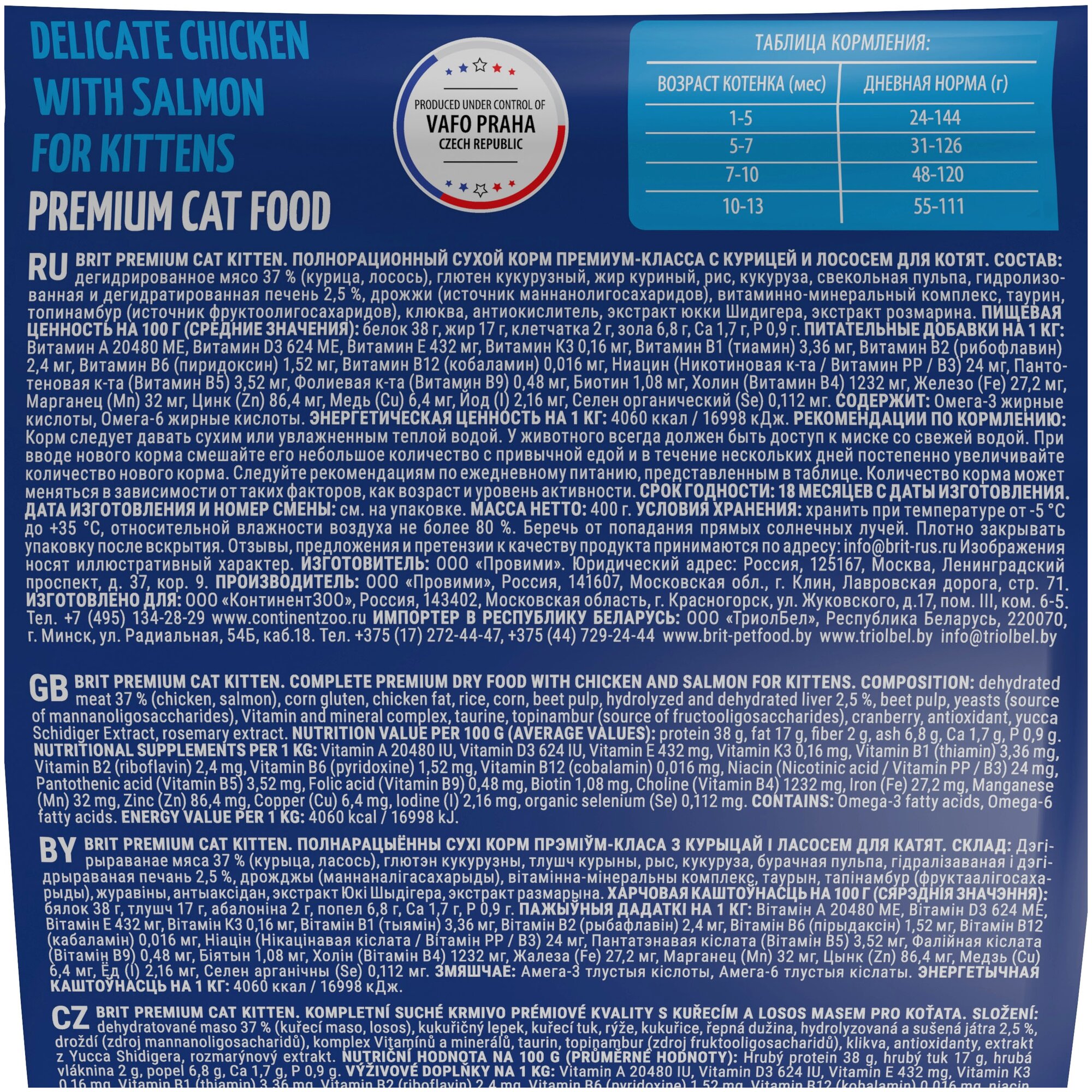 Brit Premium Cat Kitten для котят, беременных и кормящих кошек Курица, 400 г.