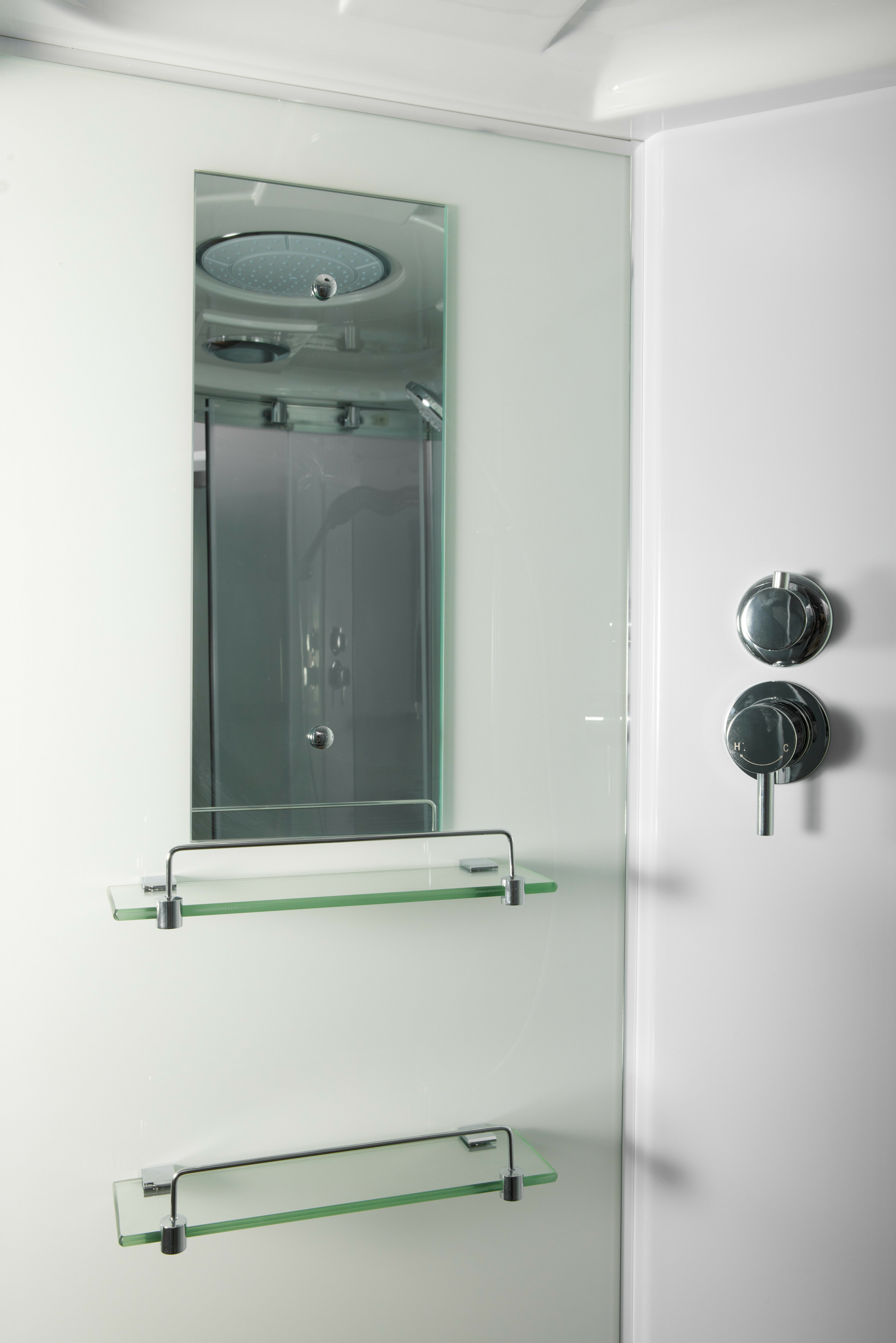 | Минусы: | 1) Неудобные полки. 2) Дешевый смеситель с самой простенькой лейкой. 3) Скрипящий поддон. |