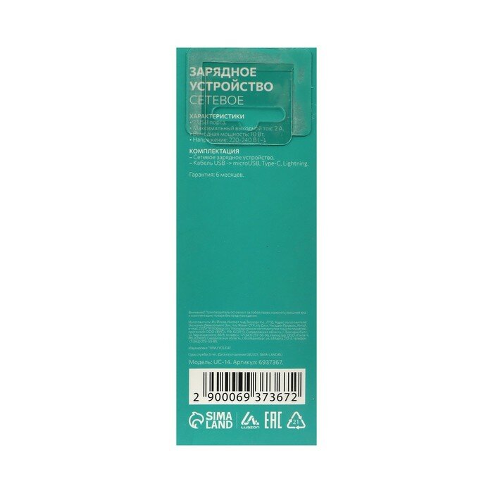 Купить Комплект для зарядки 3 в 1 LuazON UC-14, СЗУ 2хUSB, 2A, microUSB/Type-C/Lightning, белый 6937367