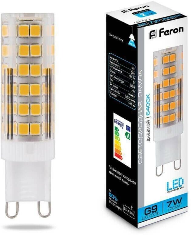 Ниже Вы можете прочитать отзывы на Лампа светодиодная G9 7W Feron 220V 6400К холодный свет LB-433, ознакомится с подробными характеристиками, посмотреть интересные обзоры и фотографии на Лампа светодиодная G9 7W Feron 220V 6400К холодный свет LB-433.