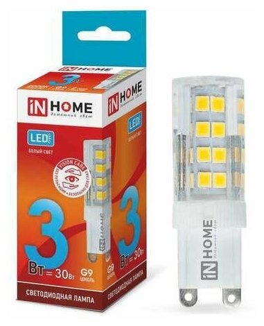 Лампа светодиодная IN HOME LED-JCD-VC, G9, JCD, 3 Вт, 4000К
