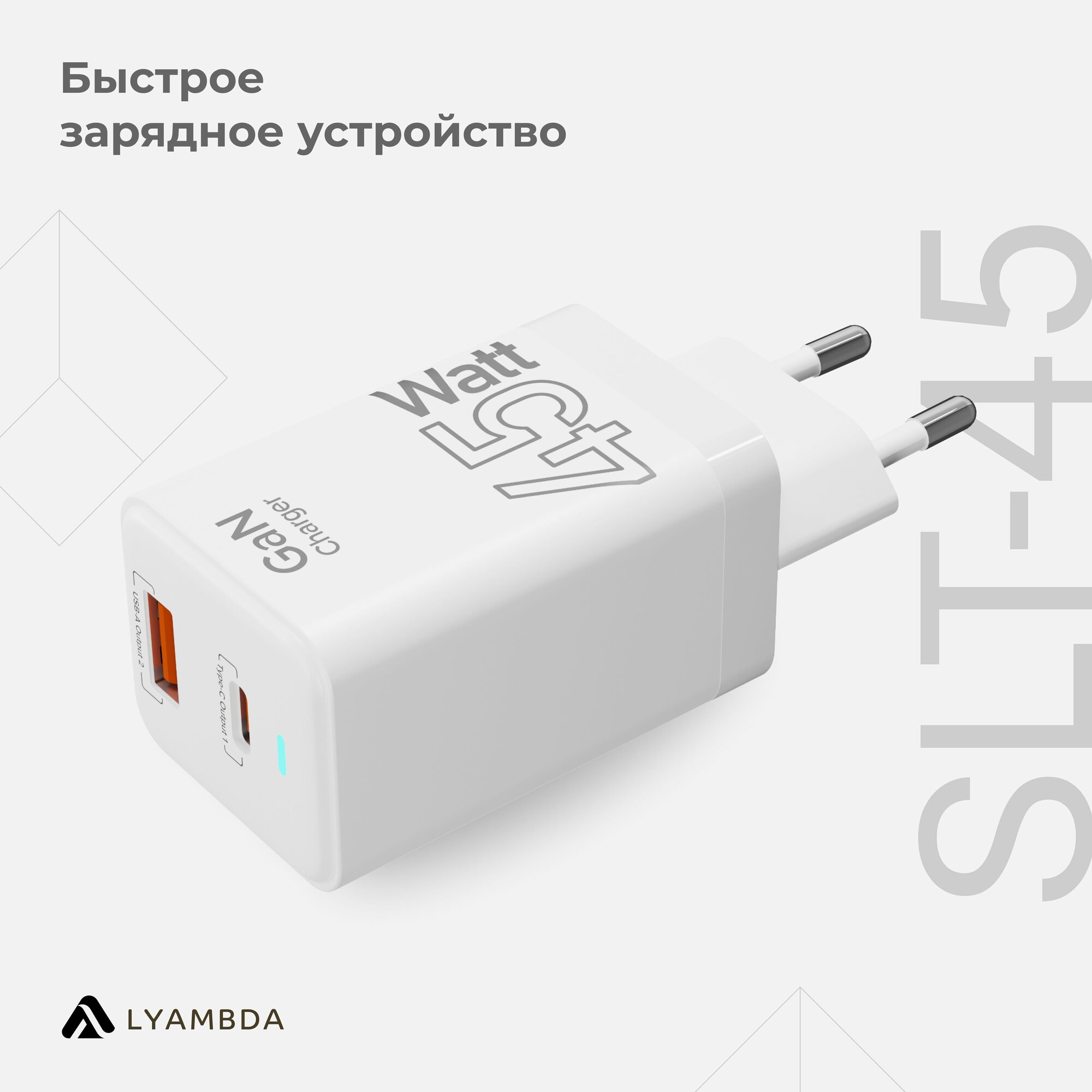 Cетевое зарядное устройство Lyambda 45Вт GaN c 2-мя выходами (PD+QC3.0) SLT-45 / сетевой адаптер 45 Вт с функцией быстрой зарядки