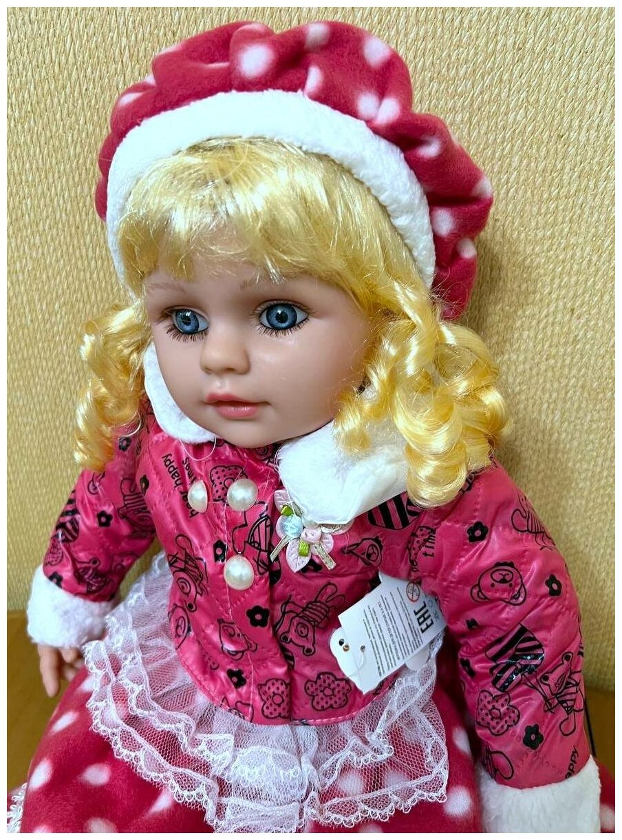 Большая кукла 60 см в курточке и шапочке, интерактивная в подарочной упаковке, в малиновом платье, говорит