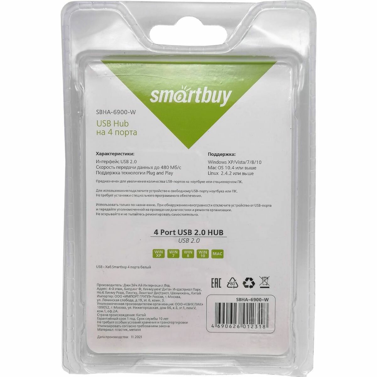 Купить USB 2.0 Хаб Smartbuy 6900, 4 порта, белый (SBHA-6900-W)
