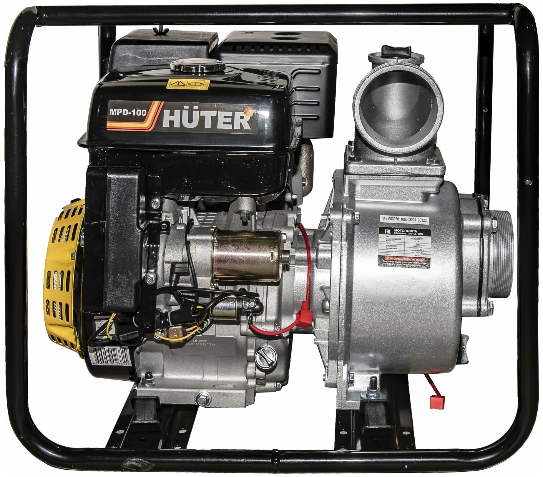 Мотопомпа HUTER MPD-100, центробежная, самовсасывающая, для грязной воды, 15 л. с, 3800 об/мин, 100/4 мм/дюйм,1800 л/мин