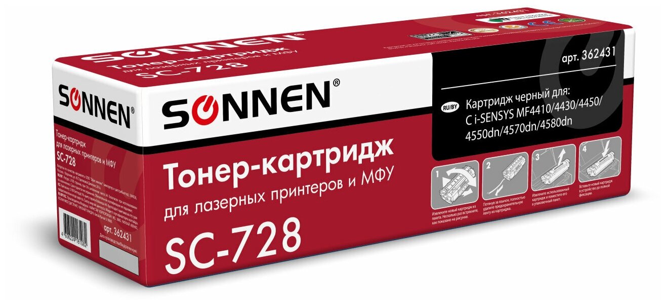 Купить Тонер-картридж для принтера лазерный совместимый Sonnen (SC-728) для Canon Mf4410/4430/4450/4570dn/4580dn, ресурс 2100 страниц, 362431