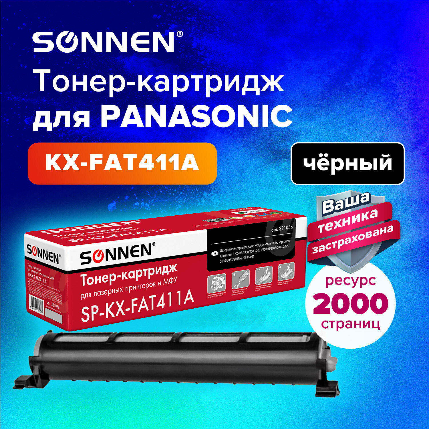 Тонер-картридж SONNEN (SP-KXFAT411A) для PANASONIC KX-MB1900/2000/2020/2030, высшее качество, ресурс 2000 стр., 321056 В комплекте: 1шт.