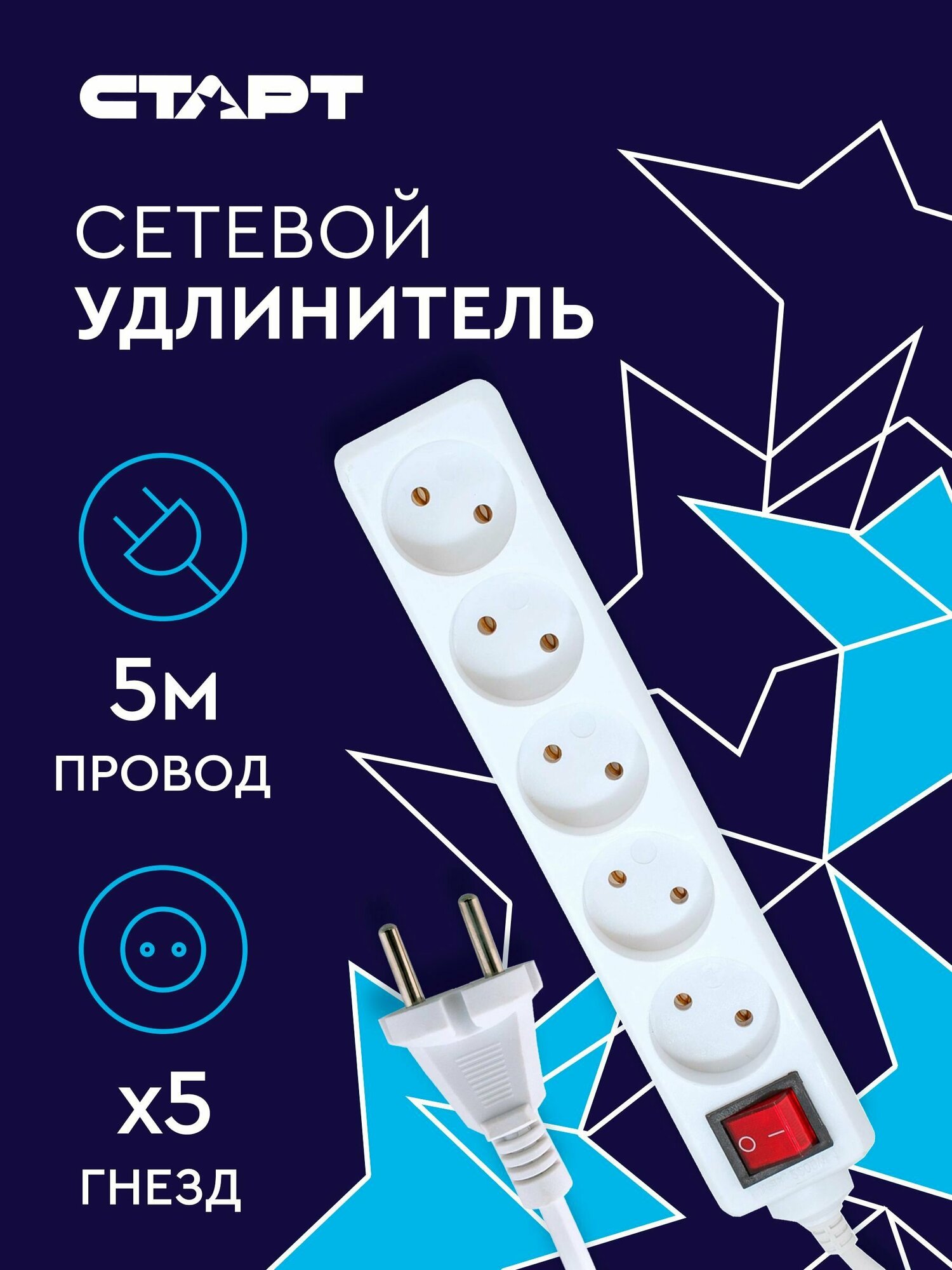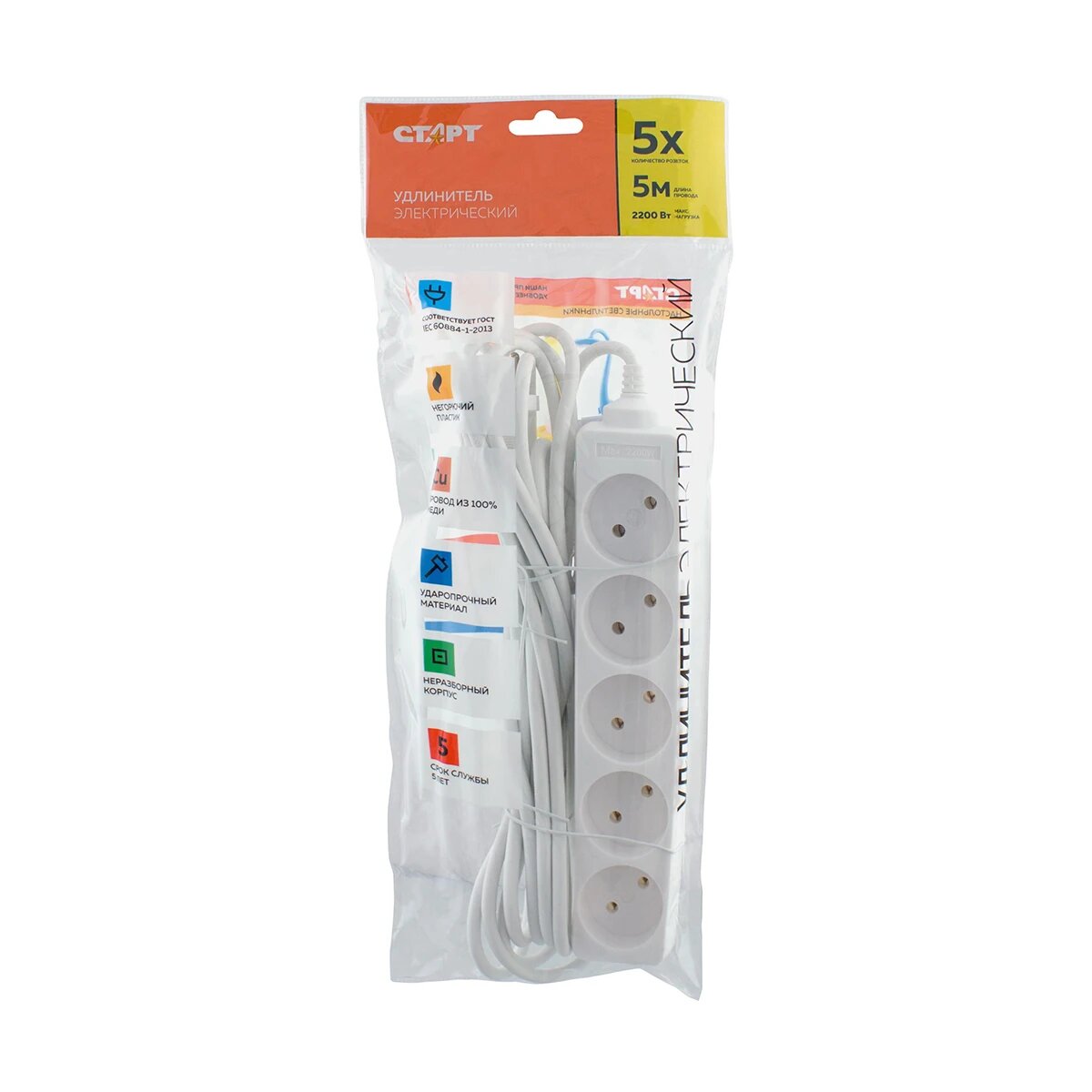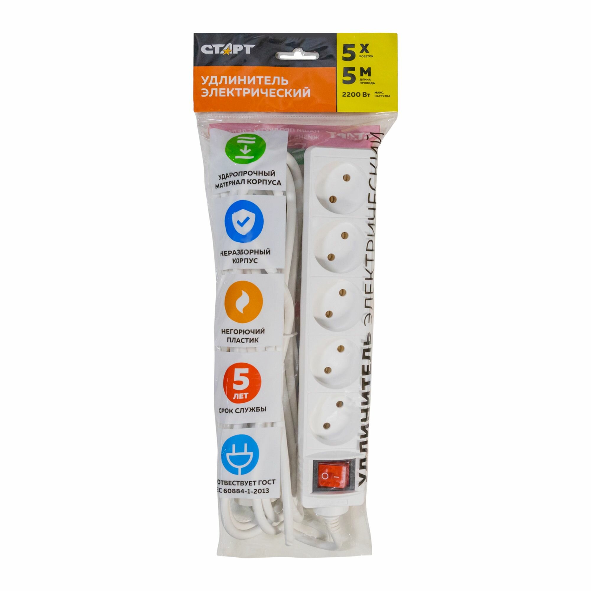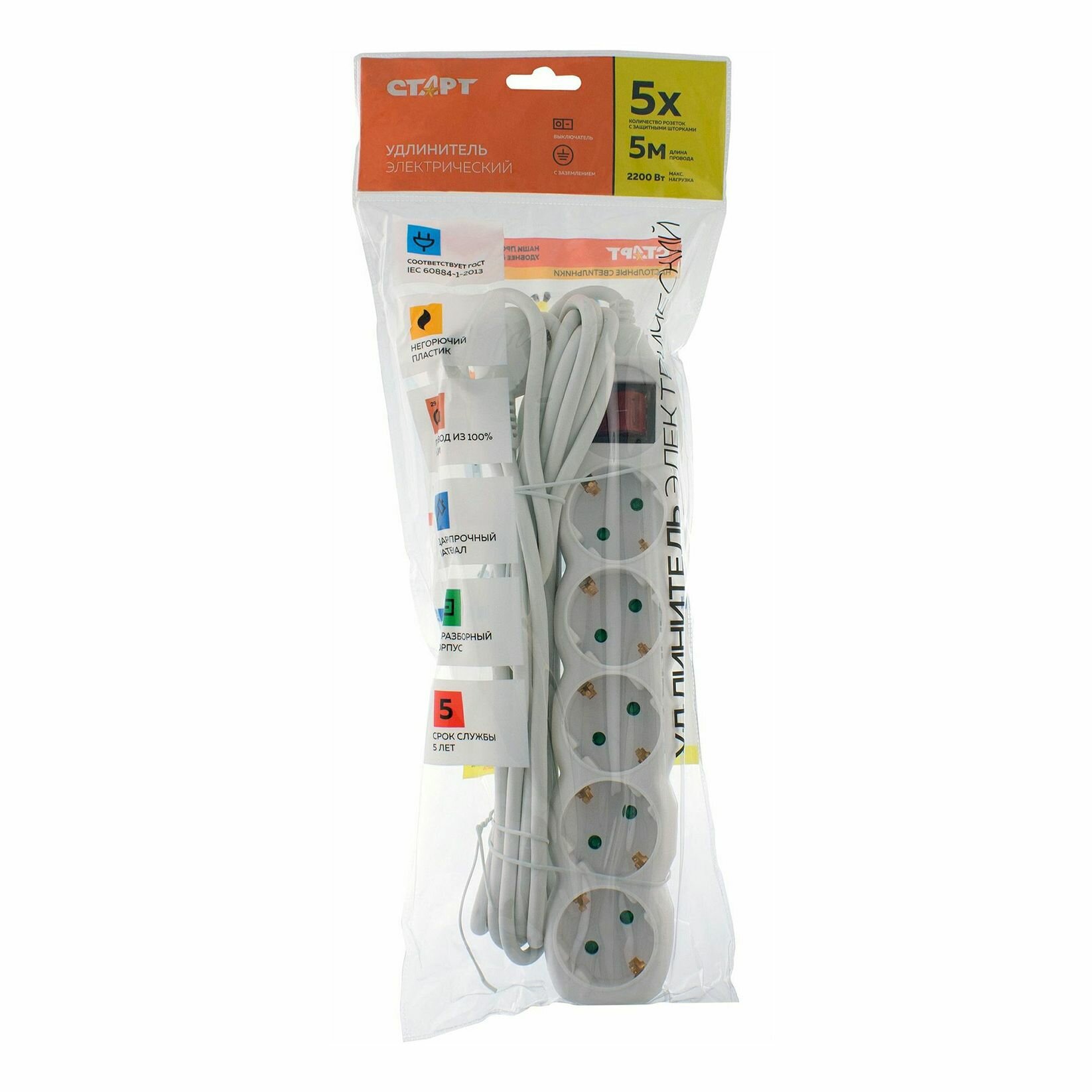 Удлинитель Старт S 5x5-ZDV, с кнопкой, с заземлением, 5 розеток евро, 5 м, белый интересное: