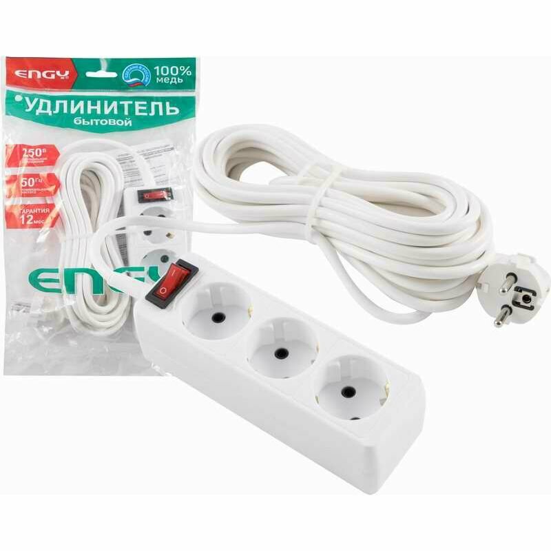 Удлинитель электрический с выключателем Engy "Гранд", 5 метров, 3 розетки