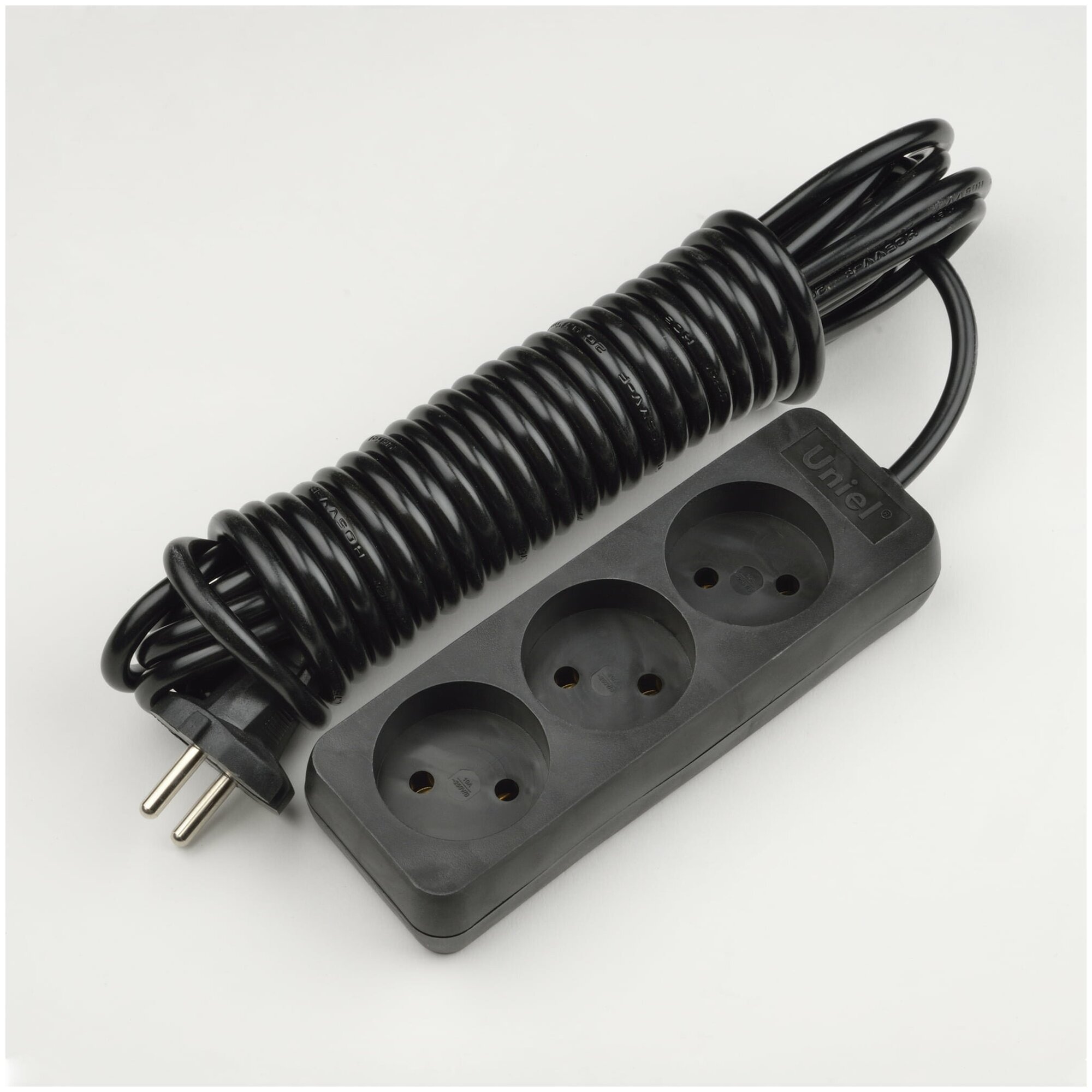 Удлинитель Uniel Standart, 3 розетки, 3 м, 10 А, 2500 Вт, без з/к, черный 7884132
