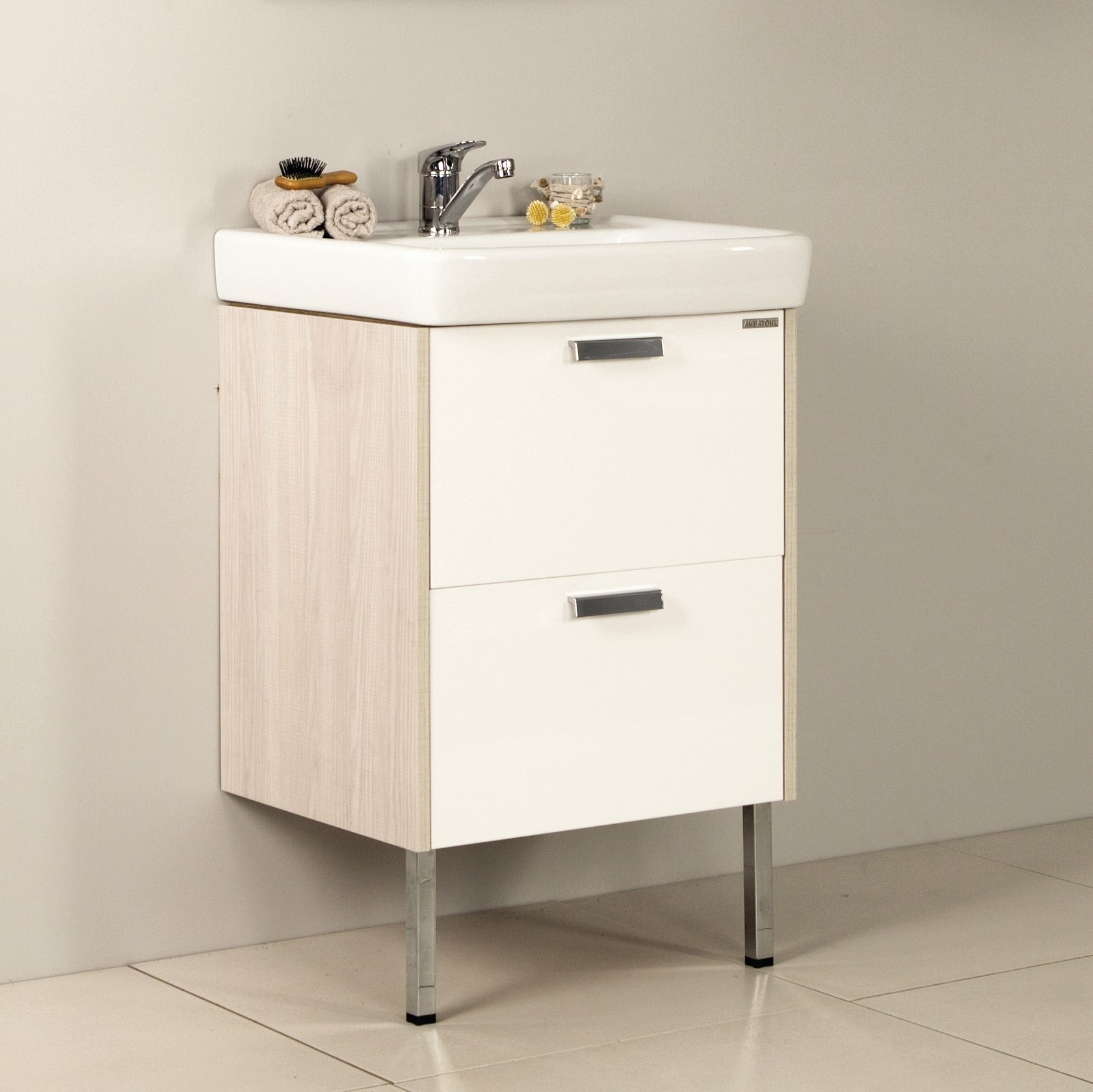 Тумба с раковиной для ванной Кристалл 50 белая.