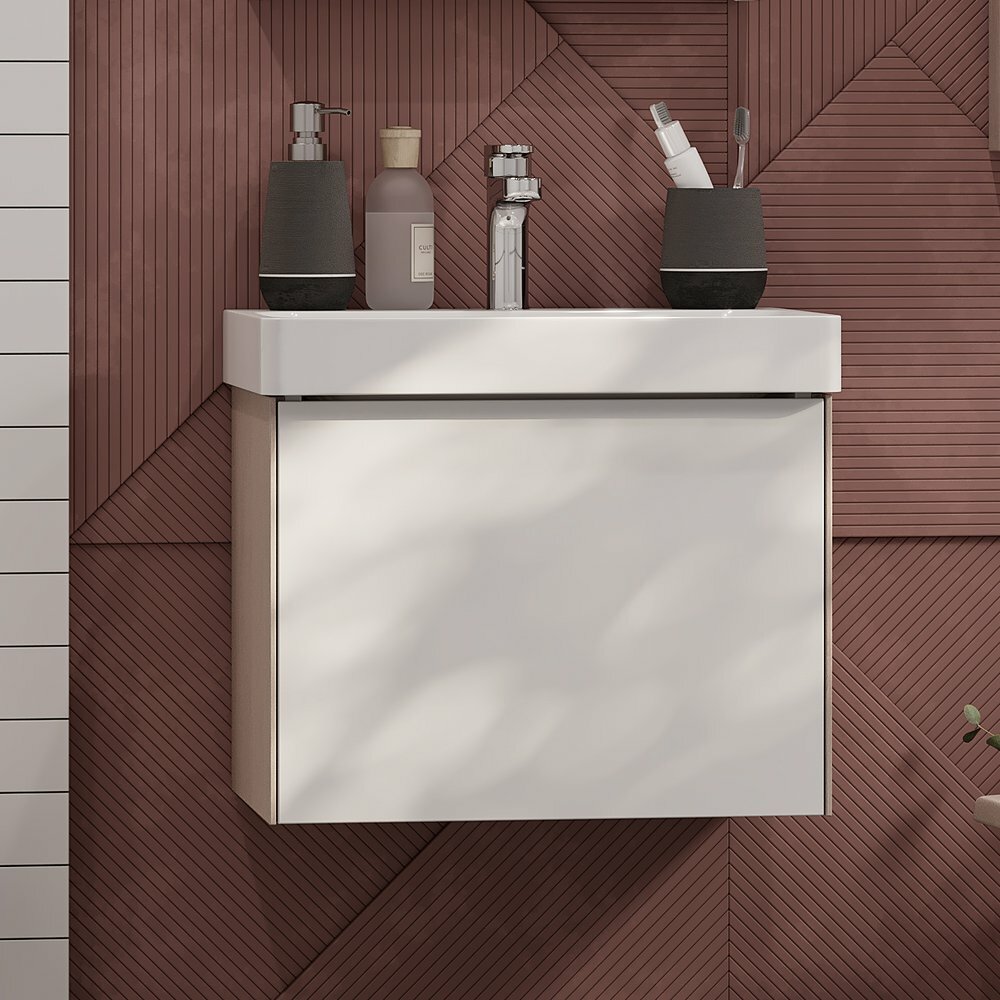 Тумба с раковиной для ванной подвесная с выдвижным ящиком AQUATON 1A2067K1VDAV0 Верди 60 белый/ясень фабрик, раковина Нео 60
