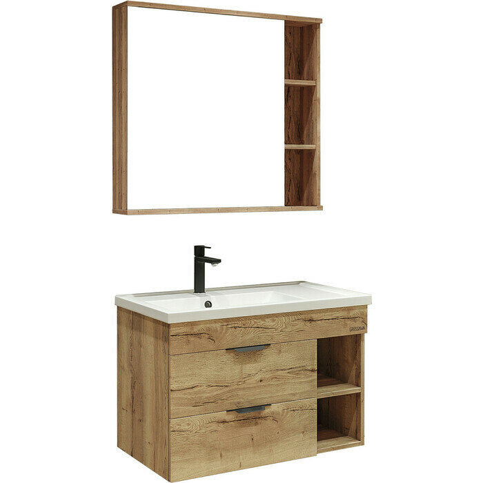 Тумба подвесная с 2 ящиками Grossman ФОРТА-80 см дуб галифакс (умывальник Фостер-80 Пр.)