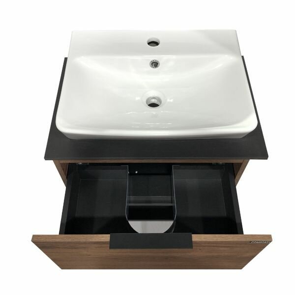 Тумба-умывальник Comforty Штутгарт-60 дуб тёмно-коричневый с черной столешницей c раковиной COMFORTY 9055RA-50 (00004151039)