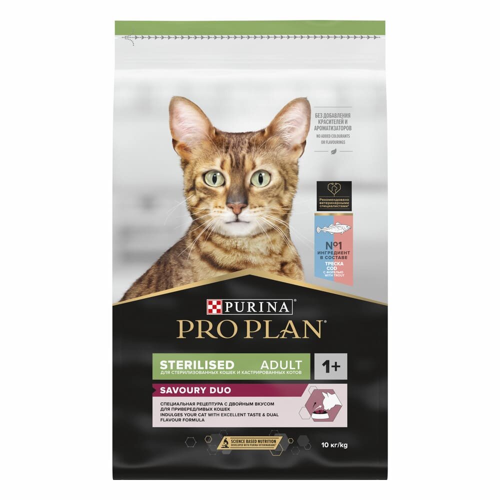 Сухой корм для кошек Pro Plan OptiSavour для стерилизованных, с высоким содержанием Трески и c Форелью 10 кг