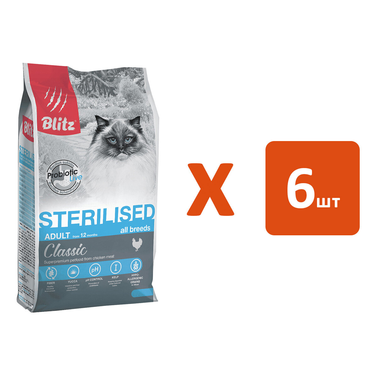 BLITZ CLASSIC ADULT CAT STERILISED CHICKEN для взрослых кастрированных котов и стерилизованных кошек с курицей (2 кг х 6 шт) интересное: