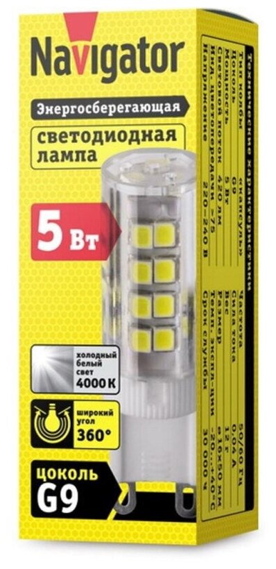 Светодиодная лампа G9 Navigator 71 267 NLL-P-G9-5-230-4K, цена за 1 шт.