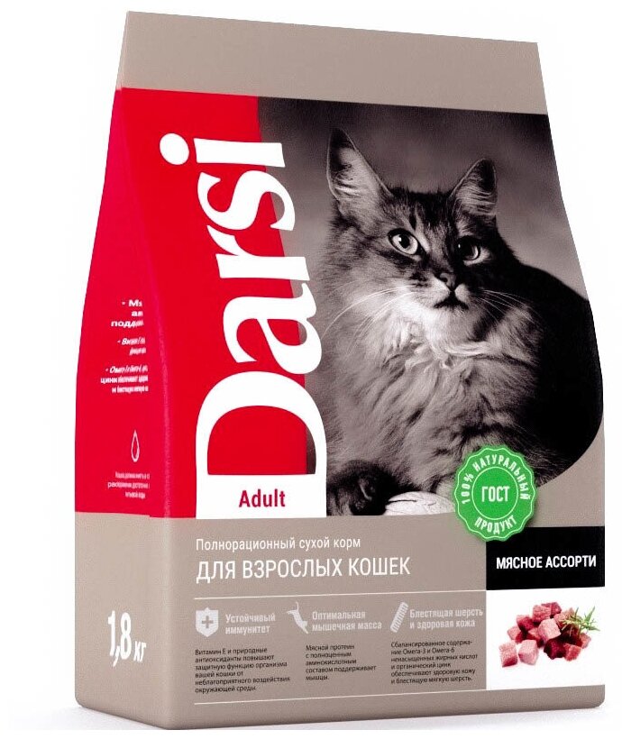 Корм Darsi для взрослых кошек Мясное ассорти, 1.8 кг