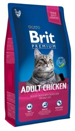 Купить Сухой корм для кошек Brit Premium, для здоровья кожи и блеска шерсти, с курицей, с куриной печенью 8 кг