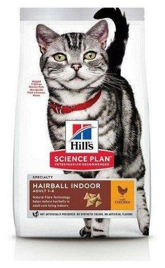 Hill's Science plane Hairball Indoor Сухой корм для домашних кошек+ вывод шерсти из желудка 1,5 кг