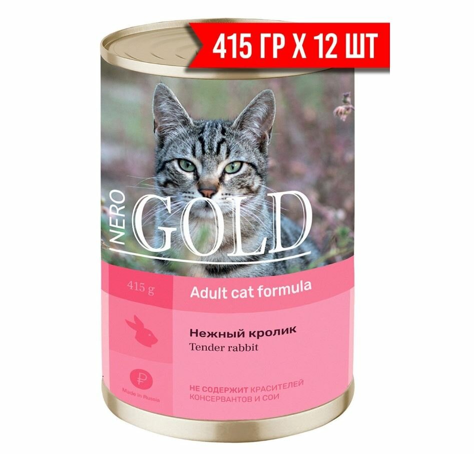 Консервы NERO GOLD ADULT CAT TENDER RABBIT для взрослых кошек с нежным кроликом (415 гр х 12 шт) интересное: