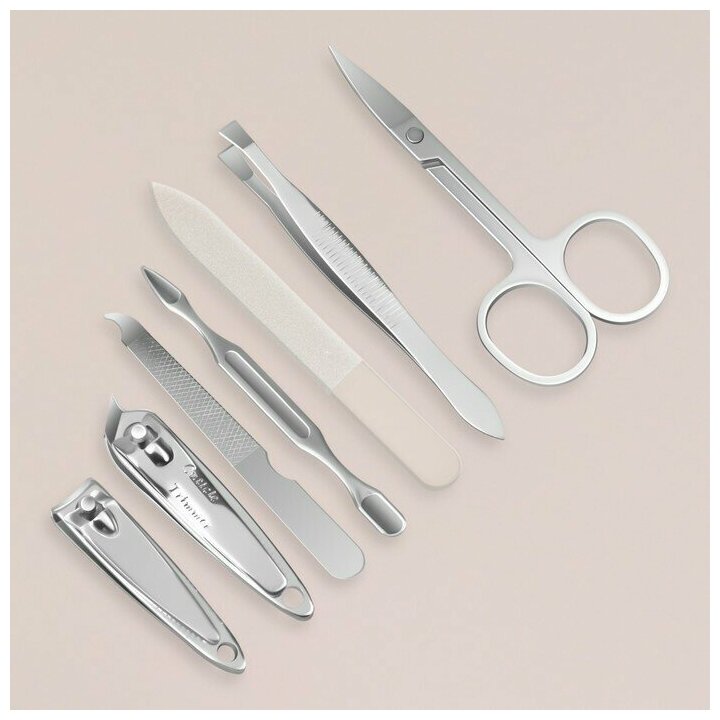 Набор маникюрный, 7 предметов, в футляре, цвет красный (1 шт.)