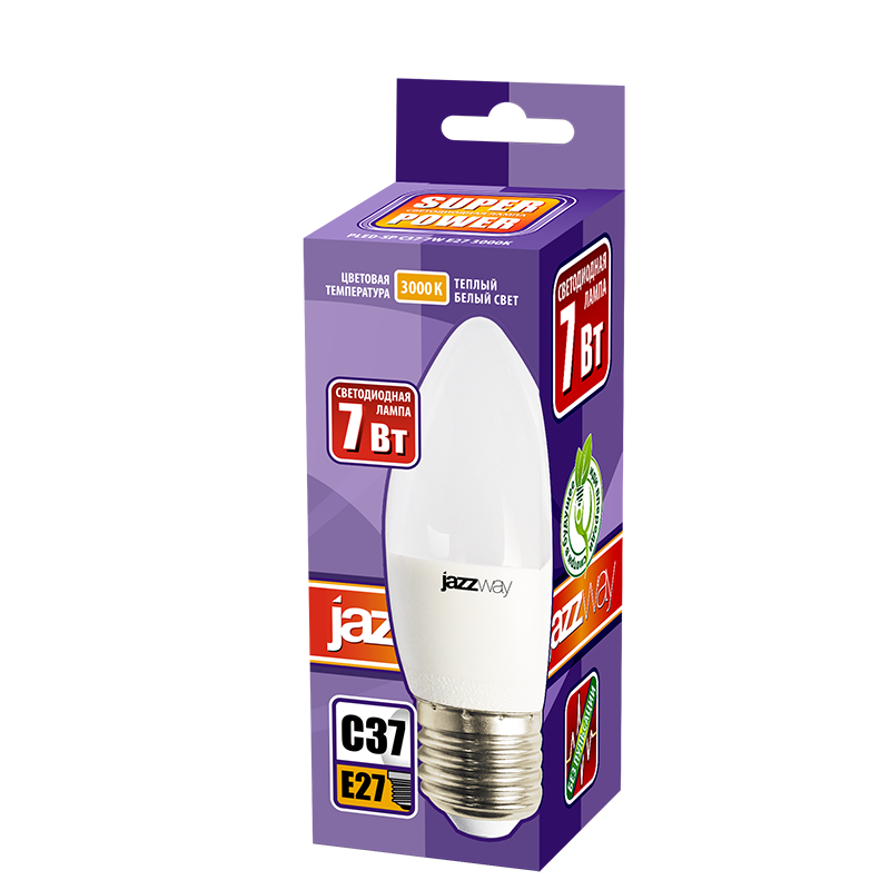 Лампа светодиодная PLED-SP 7Вт C37 свеча 3000К тепл. бел. E27 530лм 230В JazzWay 1027825-2 интересное: